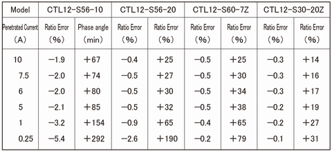 These two characteristics are the important factor for the CT of power measurement, especially. There is JIS standard for the CT of meter application as 1A-5A output which is used usually. However, the current sensor of URD can't be applied to the JIS standard, because the other parameters such as load resistor need to be thought with the cause of the high current ratio, although the principle is same.