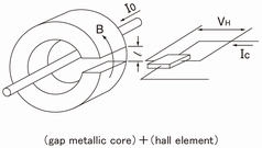 The magnetic flux proportional to penetrated current (Io) is converged to the metallic core, and goes through the hall element inserted into the gap, and finally, the hall voltage (VH) is occurring.